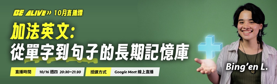 這場直播,將帶你用「加法英文」把單字變成句子,句子變成流暢輸出!