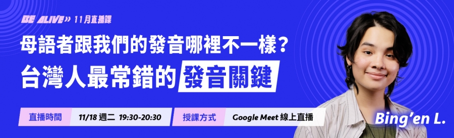 這場直播,Bing’en 老師將帶你深入了解母語者的發音邏輯,