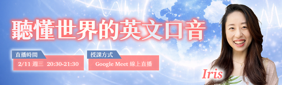 這場直播,Iris 老師將帶你用正確觀念,重新認識口音、發音與英文理解力的關係,