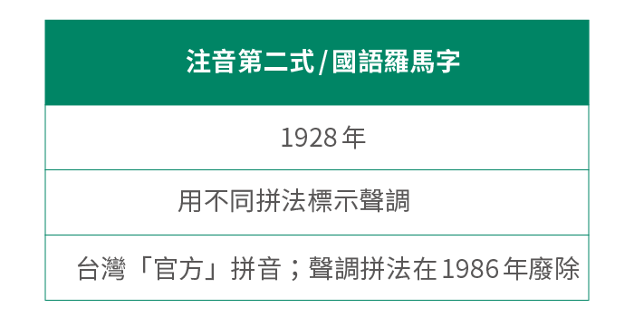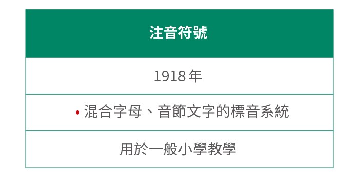 國民政府在1918年規定,各小學要用注音符號來標音,教小朋友認識字;1928年也發佈了另外一套「國語羅馬字」,也叫做「注音第二式」,是由趙元任、林語堂等學者所設計的輔助標音文字。